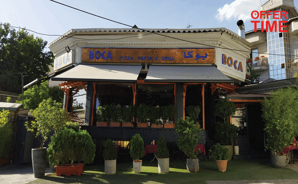 بوکا در منطقه نیاوران، خیابان پورابتهاج، پلاک ۳۰۳، رستورانی است با فضای لوکستر و مناسب برای قرارهای رسمیتر یا شامهای دونفره. منوی آن نه تنها پیتزا و پاستا دارد بلکه غذاهای گریل و برگر نیز ارائه میدهد؛ بهعنوان مثال منوی آنلاین این رستوران نشان میدهد پیتزا «میگو» و «پیتزا مدیترانه» جزو گزینههای جذاب هستند.