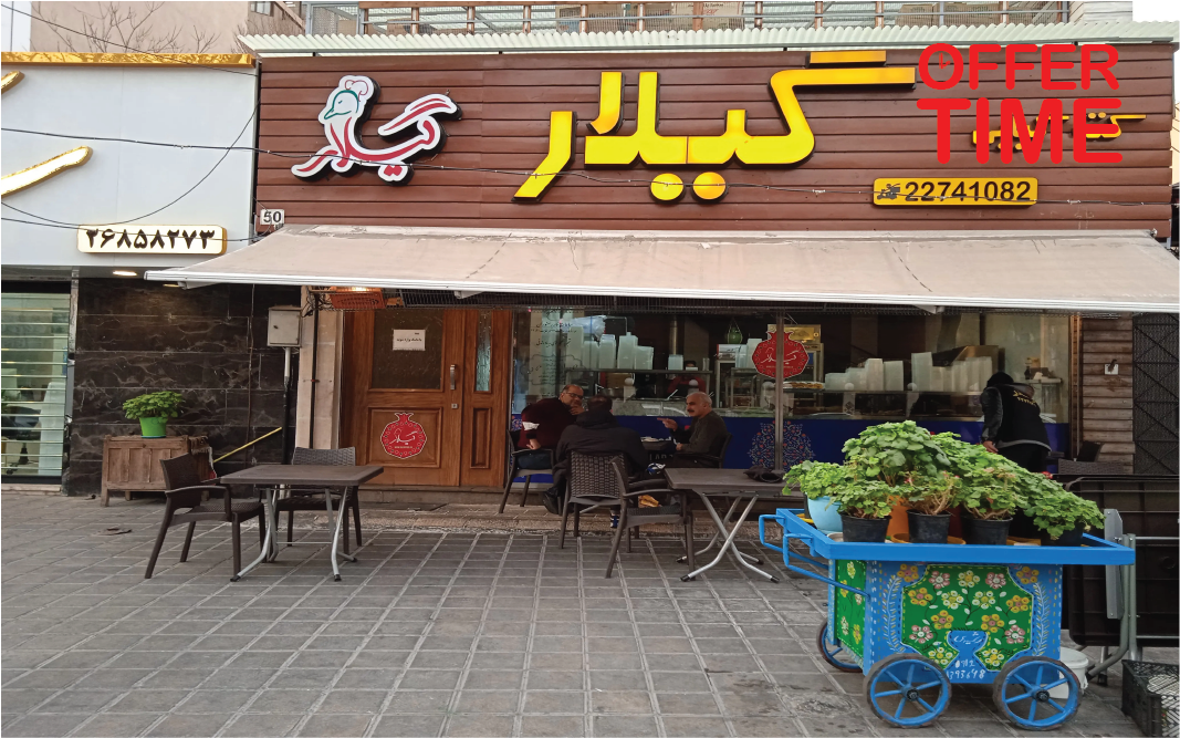 - تهران، نیاوران، میدان کاشانک، خیابان هاشمی، پلاک۲۱، طبقه منفی یک، رستوران گیلار